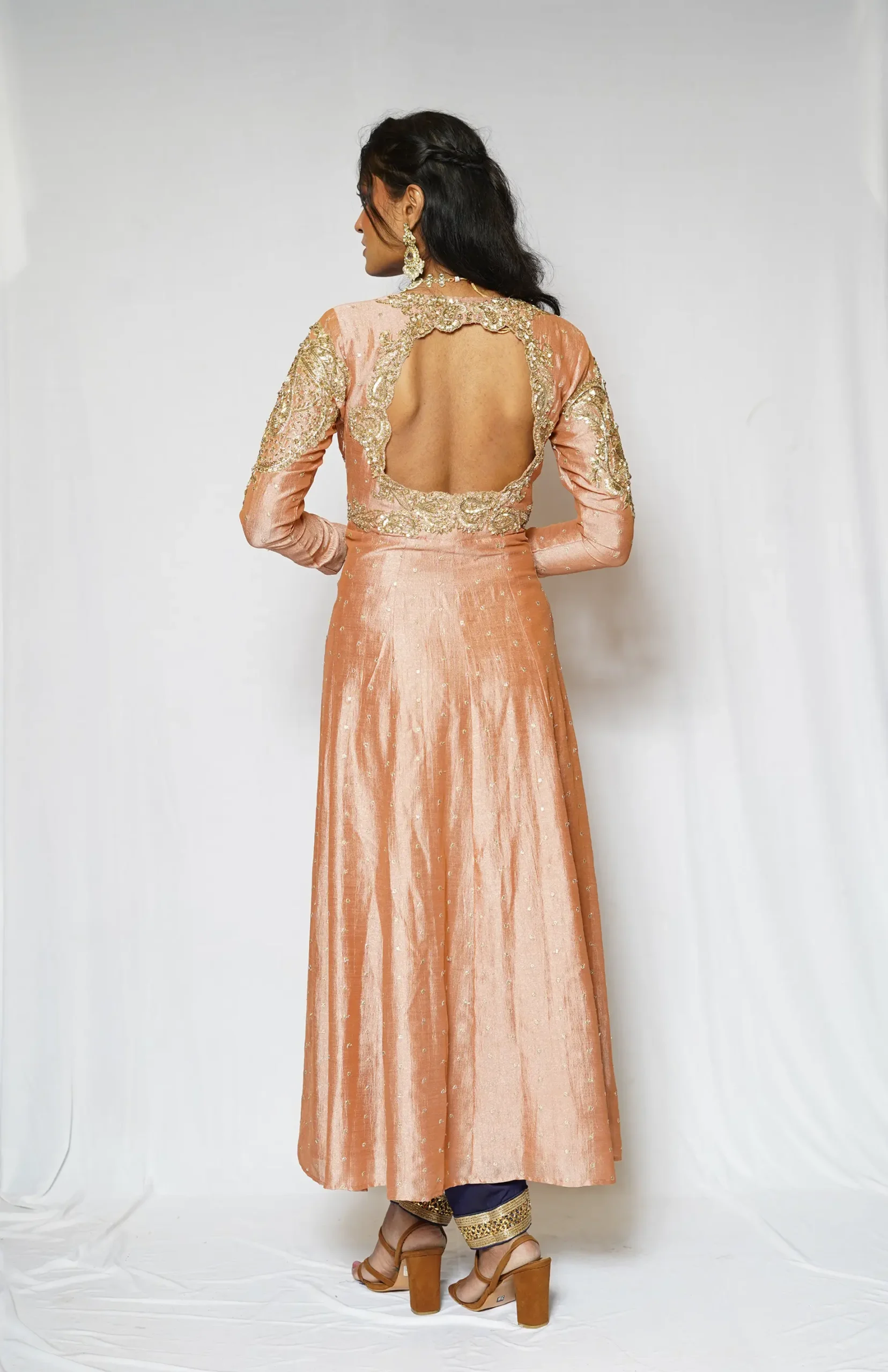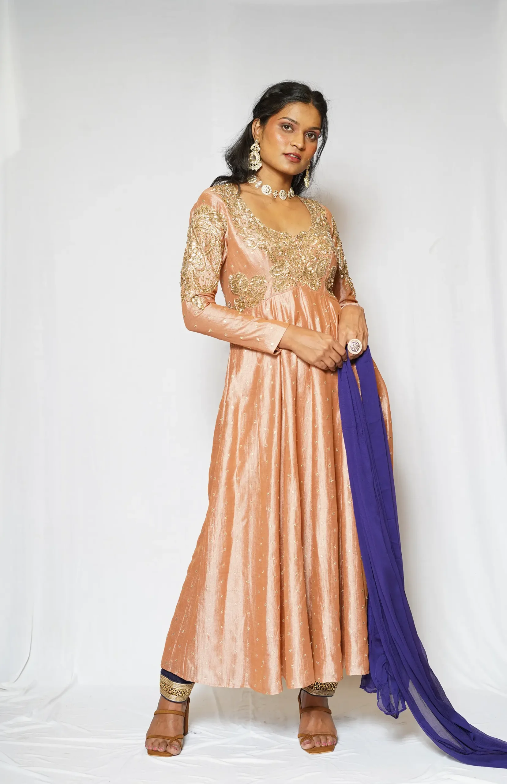 Timeless, feminine, and meticulously crafted, the Mehr Peach Couture Anarkali embodies modern Indian couture with a soft, romantic soul.