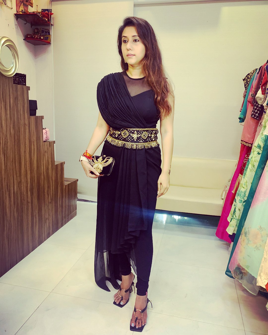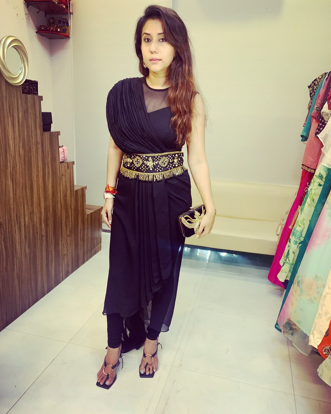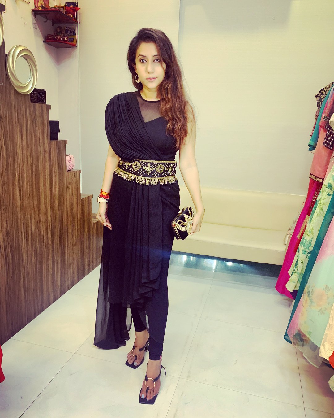 The silhouette is well tailored and has rushed up pleated drape extend till the back bottom; It’s a Ready to wear product and is available in Three colors with a Detachable Hand Embroidery Belt : Style is fusion wear and can be worn as indo western look