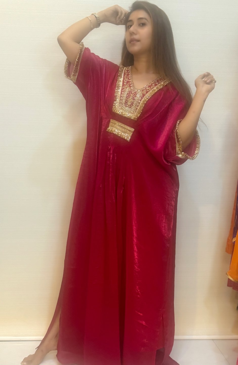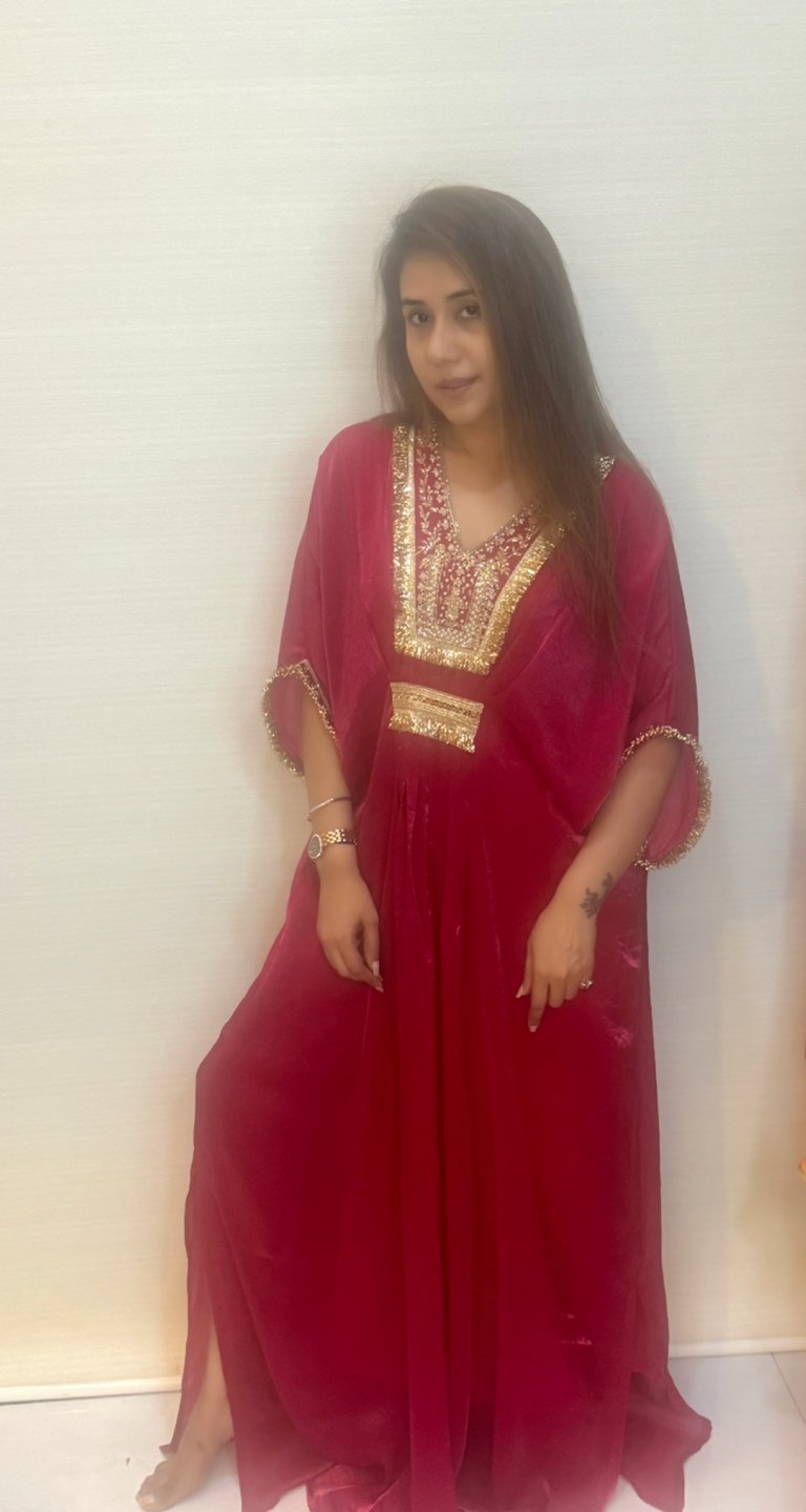 Our Pink kaftan is a fusion style long Indian gown for your semi formal Events